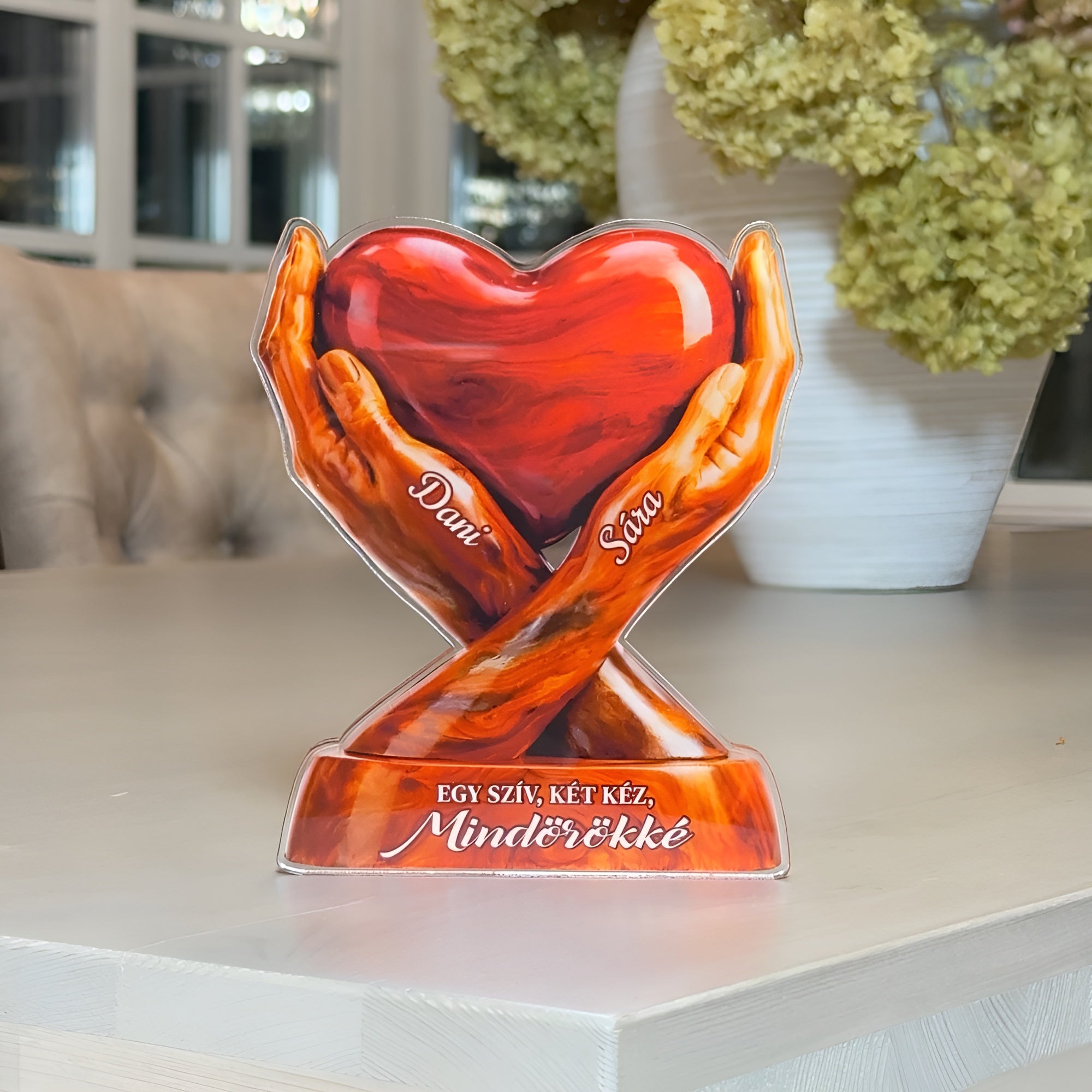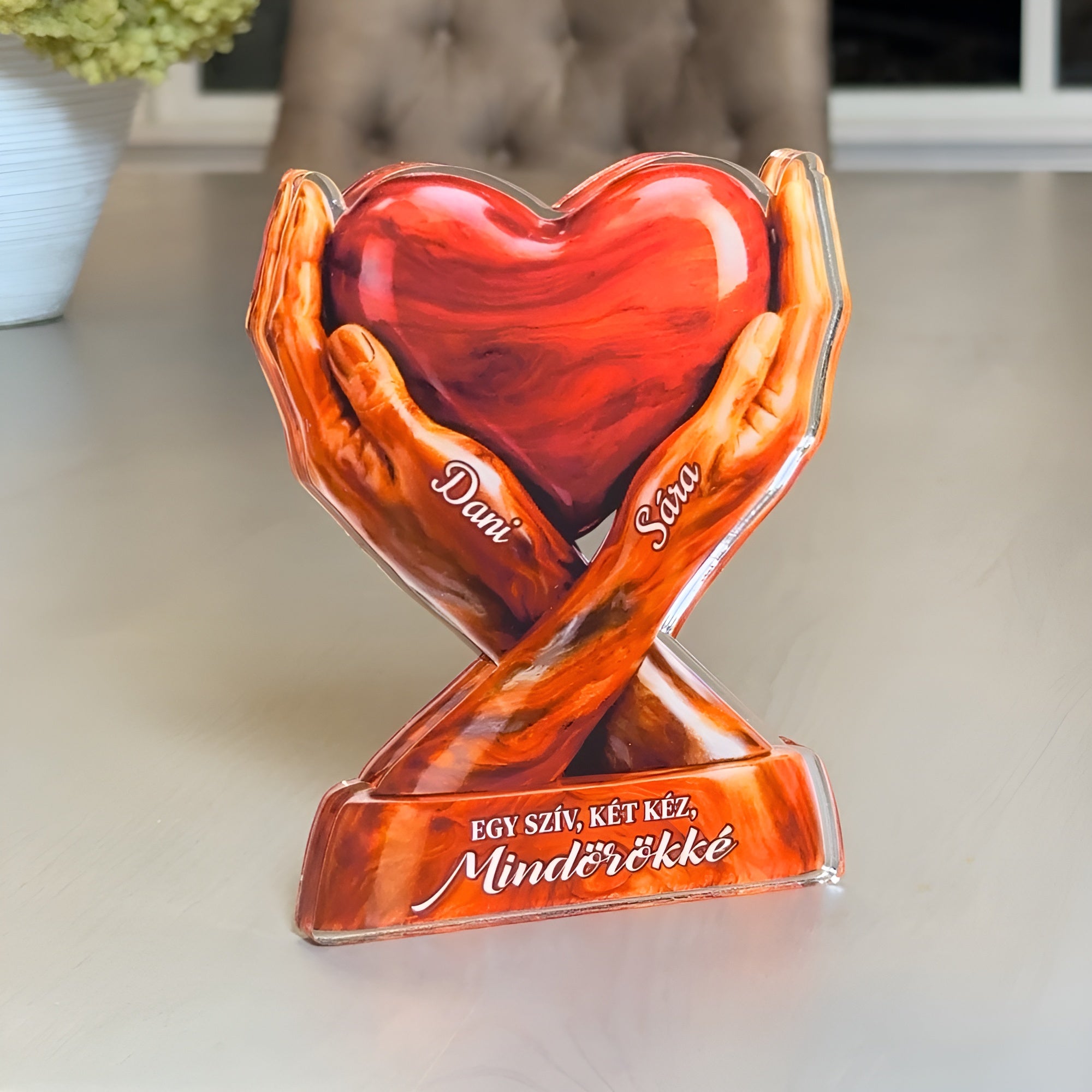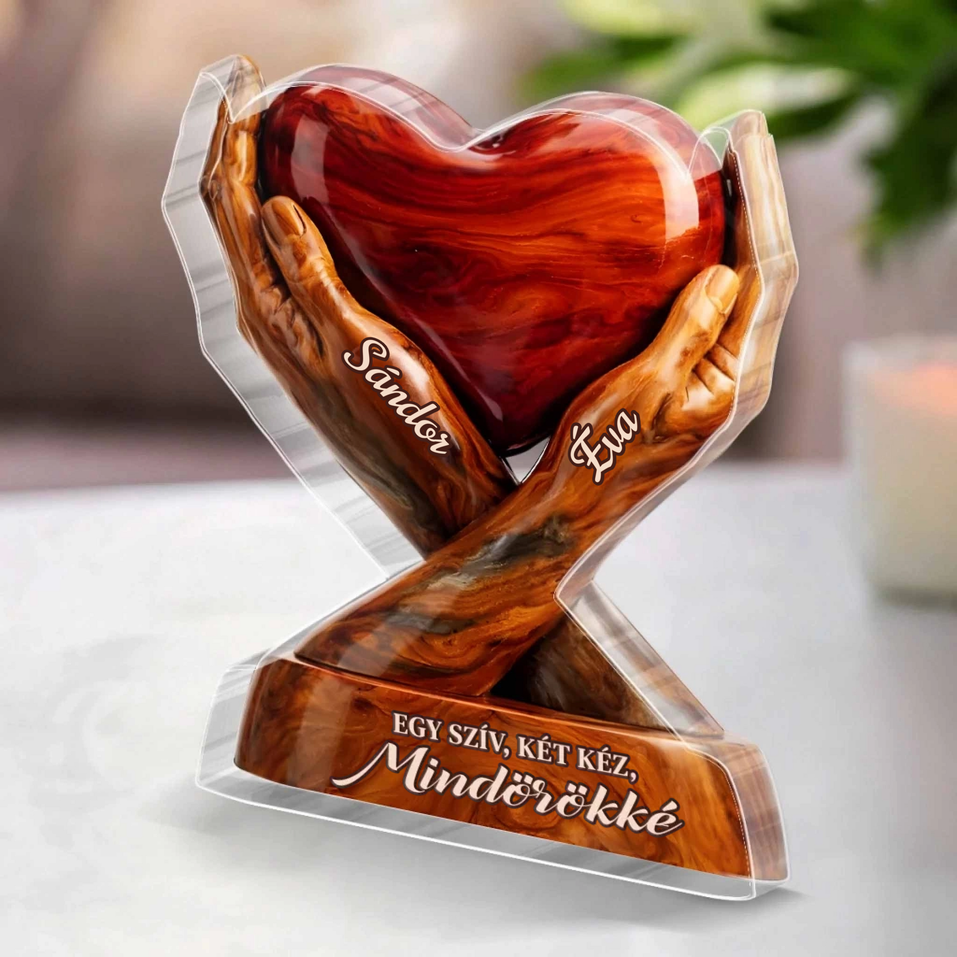 A két kézben őrzött szív az összetartozás erejét, a szerelmet és a közösen megélt emlékek melegségét jelképezi. Egy időtálló ajándék, amely csendben mesél az örökre szóló kapcsolódásról. Tökéletes választás évfordulóra, esküvőre vagy csak úgy – szívből. ❤️