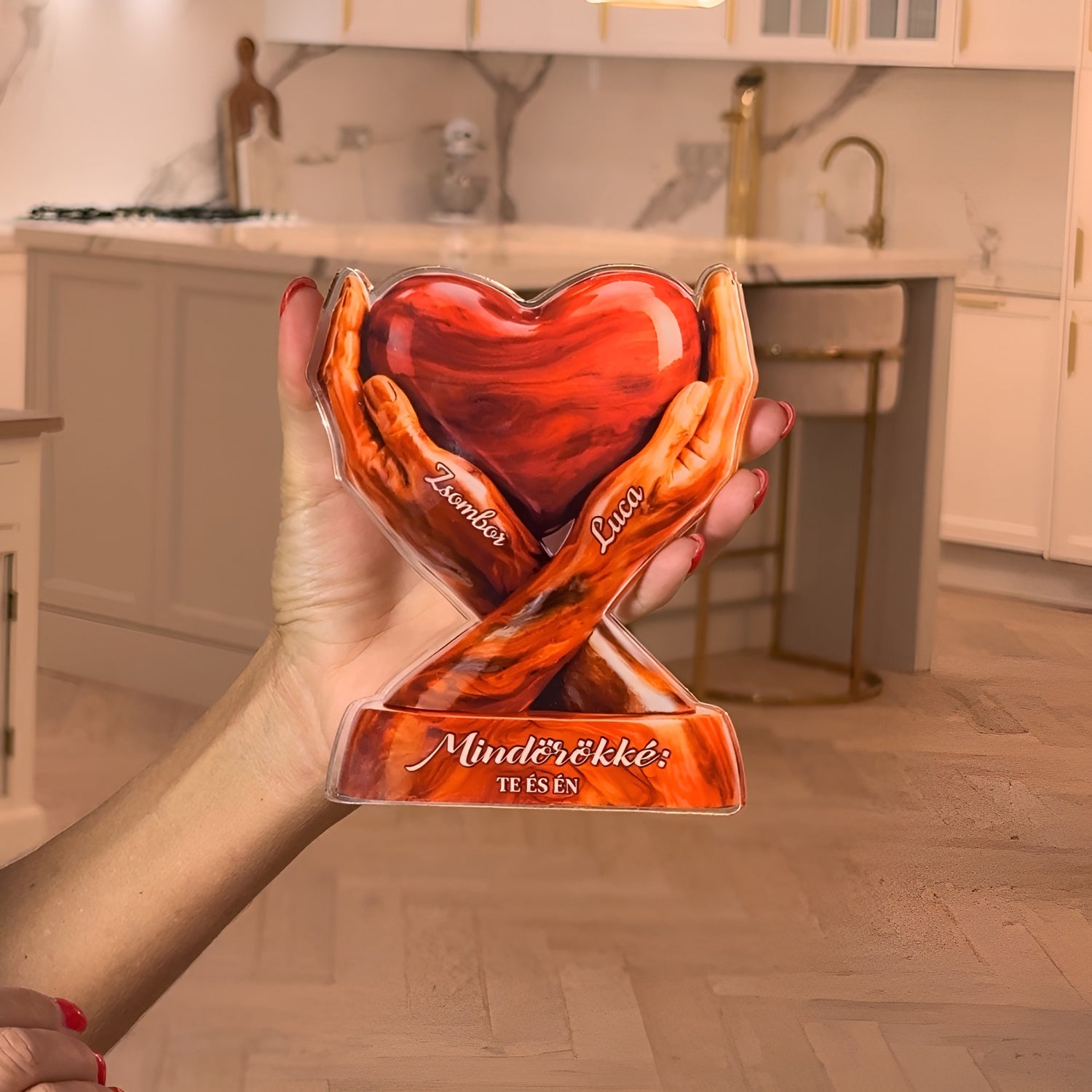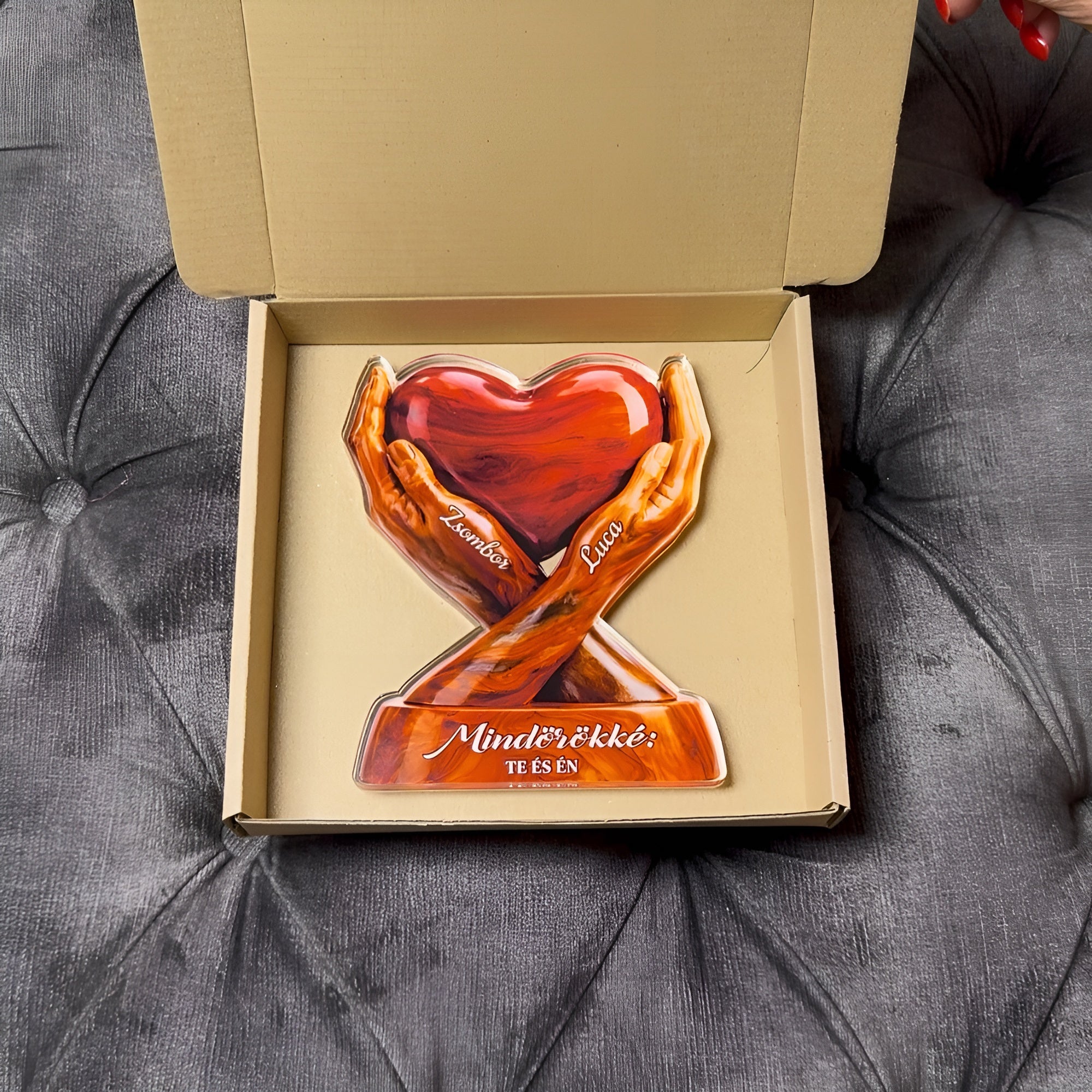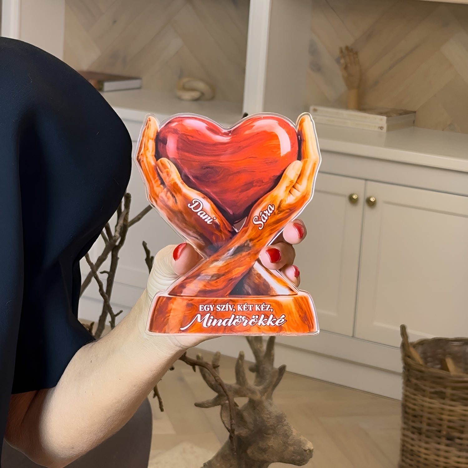 A két kézben őrzött szív az összetartozás erejét, a szerelmet és a közösen megélt emlékek melegségét jelképezi. Egy időtálló ajándék, amely csendben mesél az örökre szóló kapcsolódásról. Tökéletes választás évfordulóra, esküvőre vagy csak úgy – szívből. ❤️
